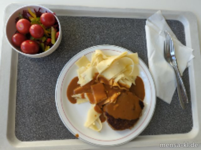 Pfälzer Frikadelle, Bratensoße, Kartoffelstampf und Endiviensalat