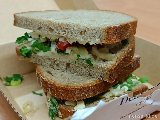 Vegane Wurst mit Currysoße C4PU und Röstzwiebeln, dazu ein Baguettebrötchen ⏰ Abendmensa von 16:00 bis 18:00 Uhr